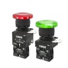 HB-K20A-MD latching push button switches 22mm mushroom head red green led illumination with lamp